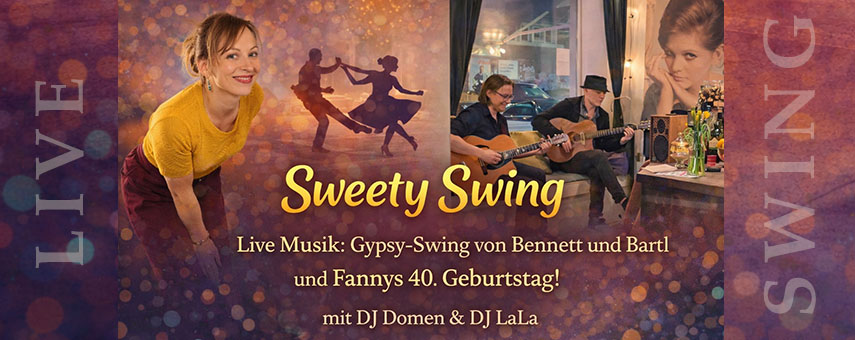 Anlässlich Fannys 40. Geburtstag gibt es einen besonderen Sweety Swing Abend inkl. Gypsy Swing Livemusik mit Bennett und Bartl.